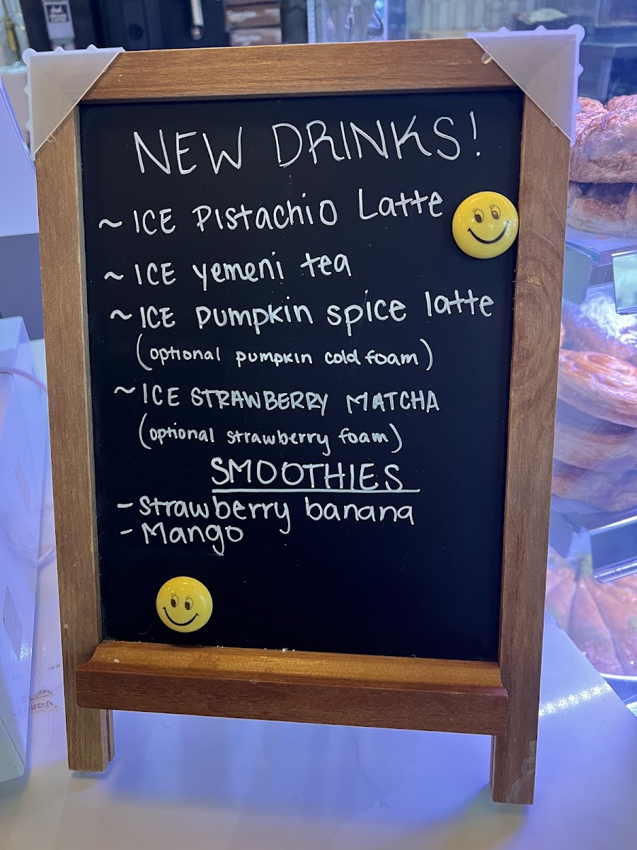 For food, the menu offers various baked goods and light bites. This includes pastries such as croissants and baklava, as well as items like focaccia, butter bread, and saffron milk cake. Small snacks such as edamame and traditional sweets like pomegranate Turkish delight complement the beverage offerings.